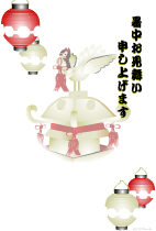 飾り紐に神輿とちょうちん <縦型文字なし <縦 暑中 <縦 残暑 |