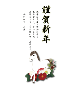 2026年テンプレート 午と椿の花の年賀状テンプレート(3/5) |