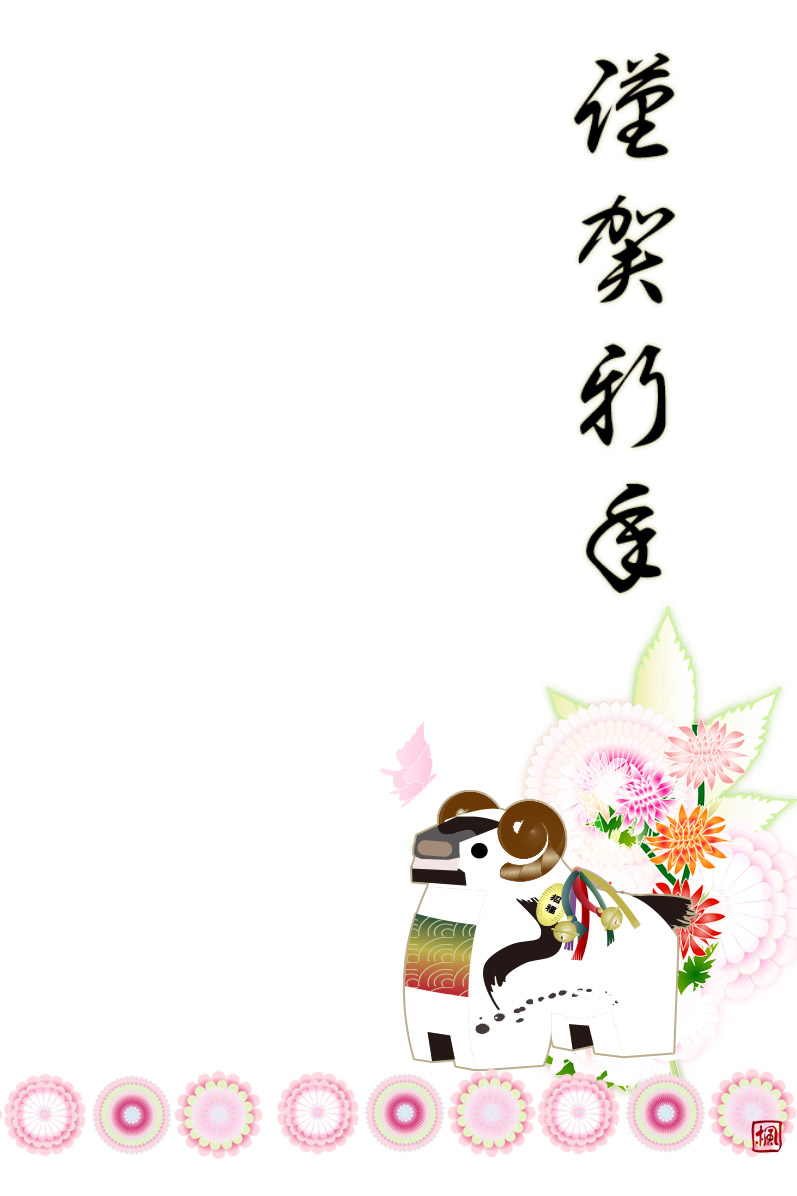 年賀状テンプレートは未と菊のイラストです。
