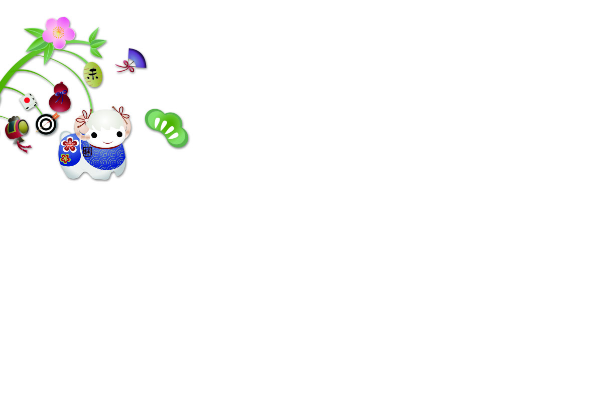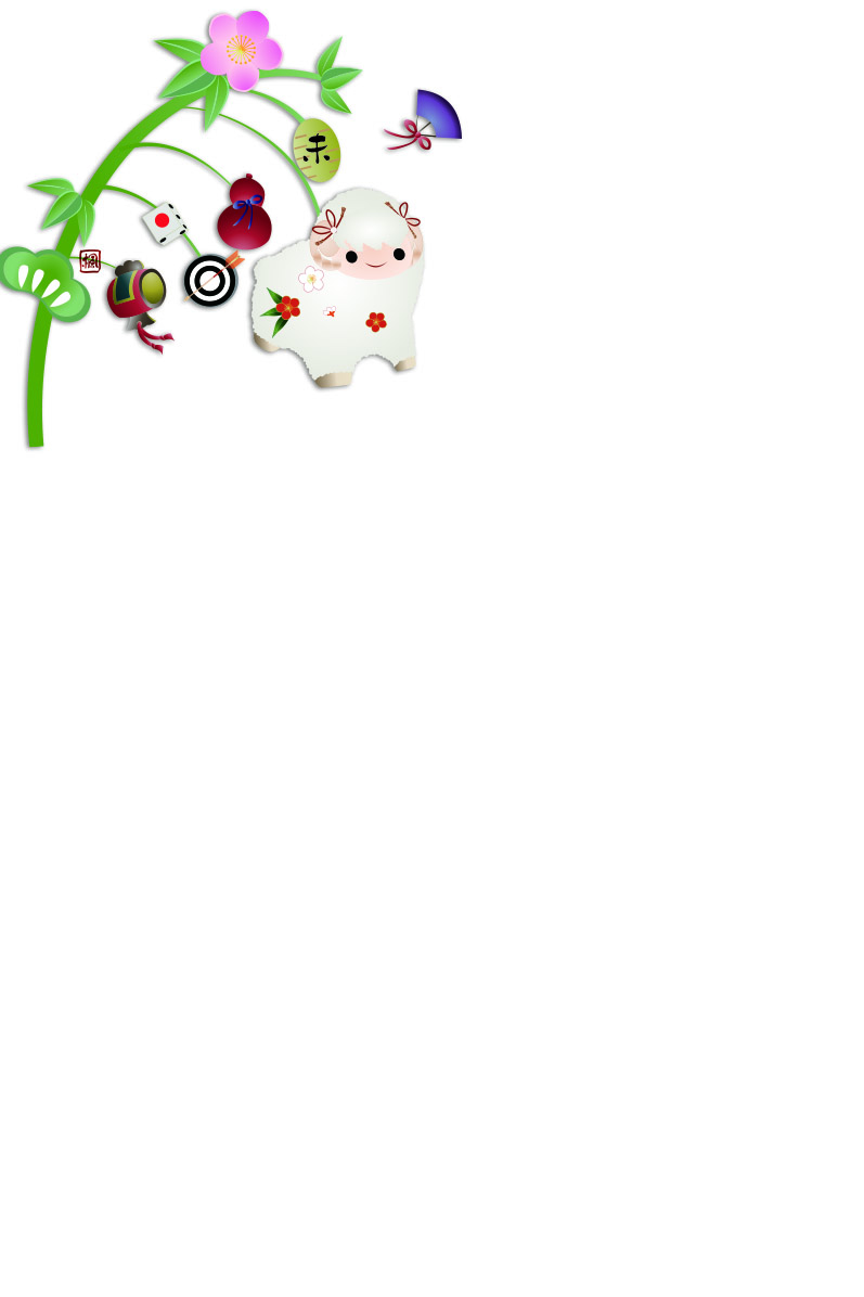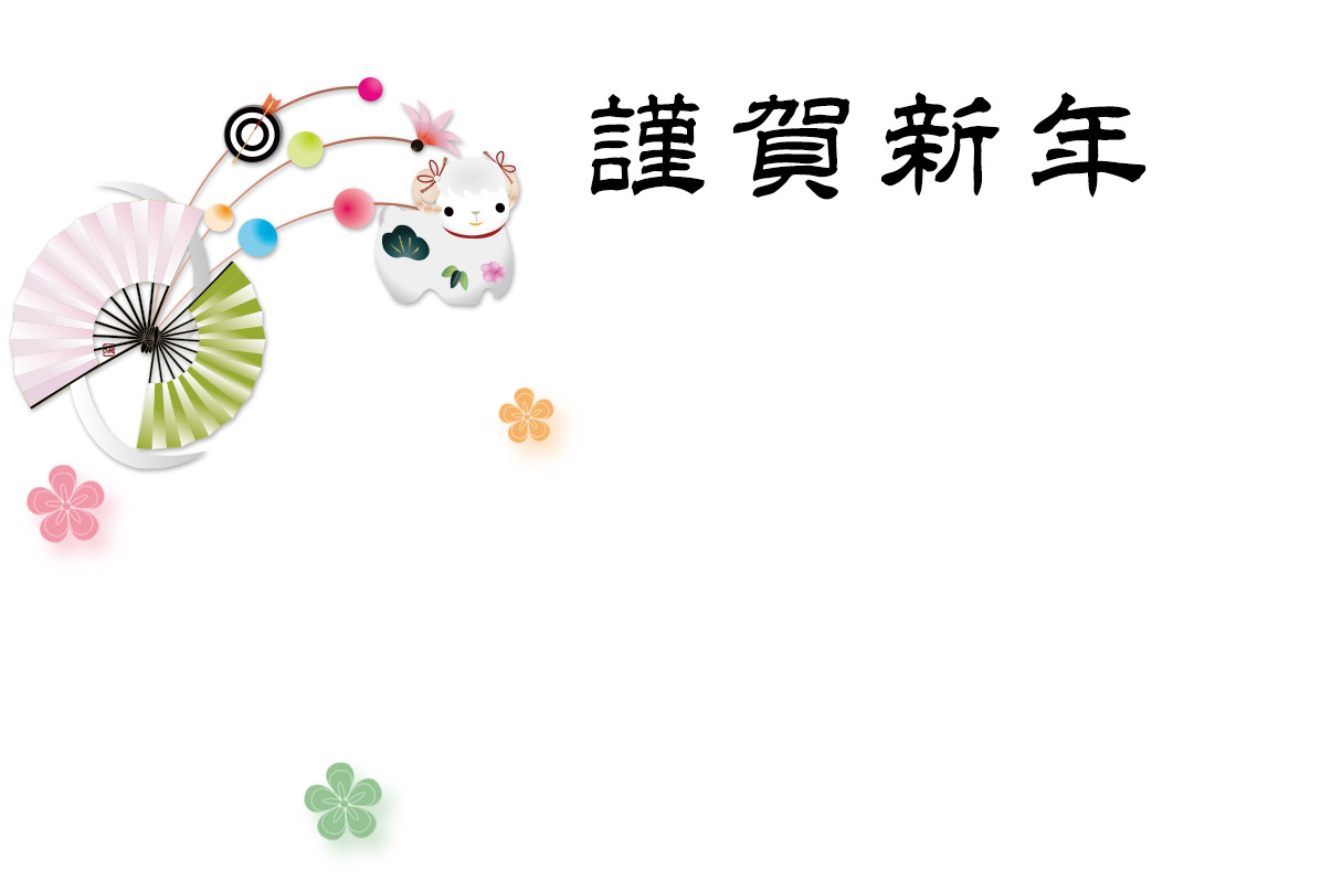 未の置物に玉飾りと扇子のデザインのイラストの横型のテンプレートです。