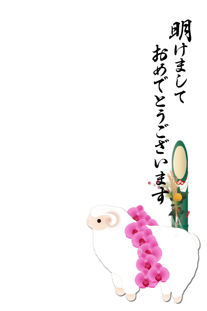 未と胡蝶蘭に年賀状らしい 賀詞と文章入りです。