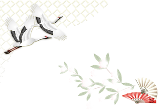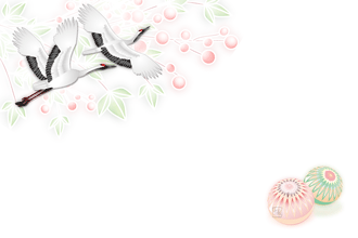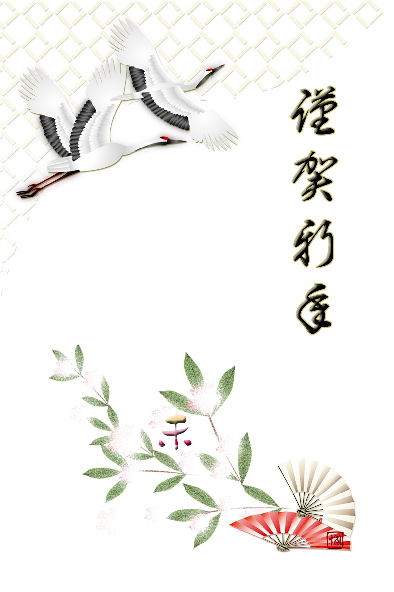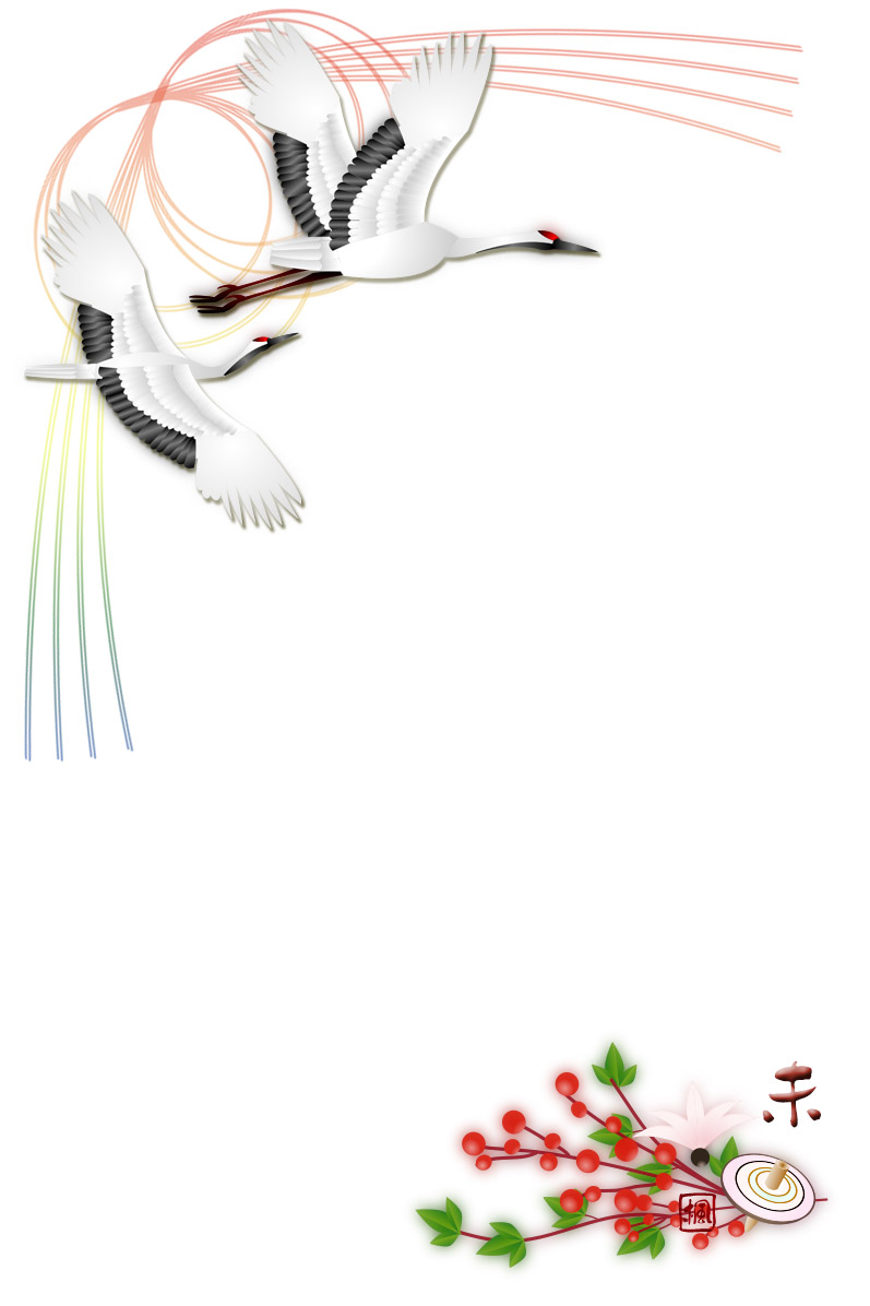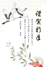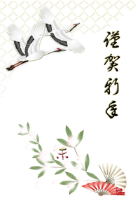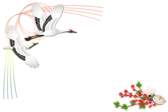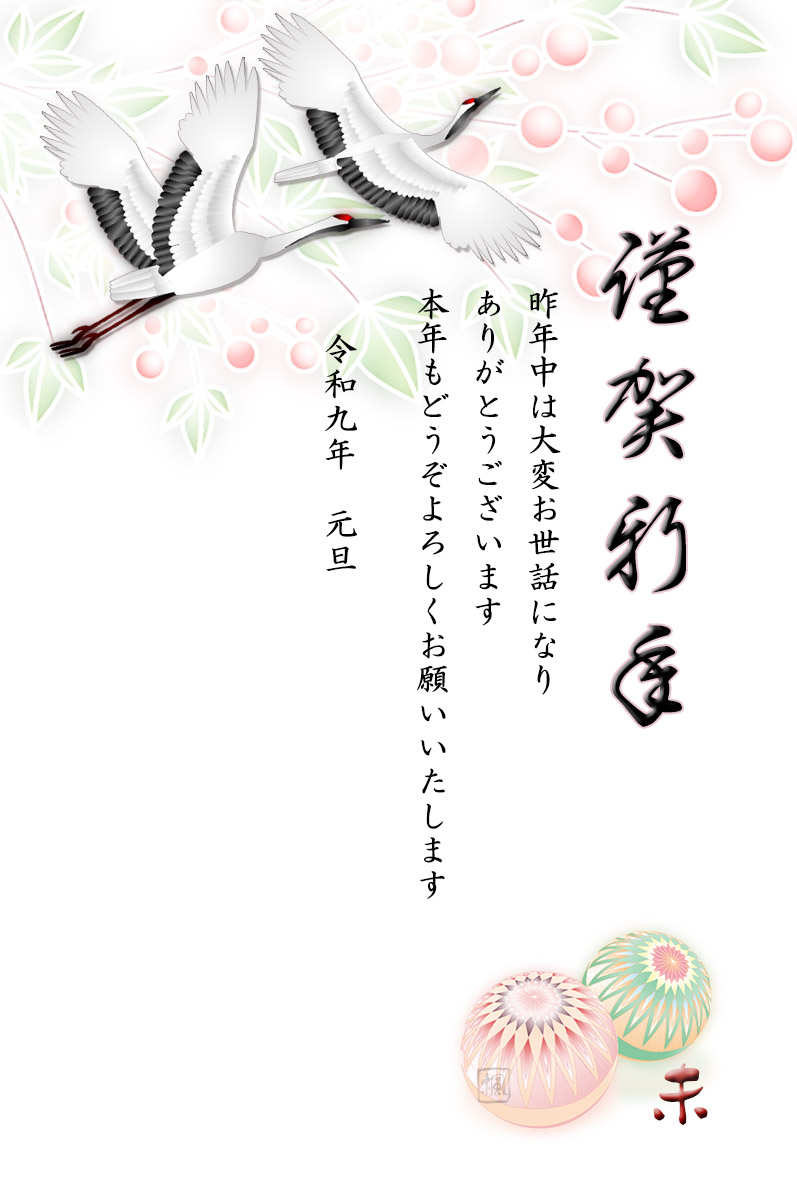 夫年賀状テンプレートは2羽の鶴が舞うイラストです。