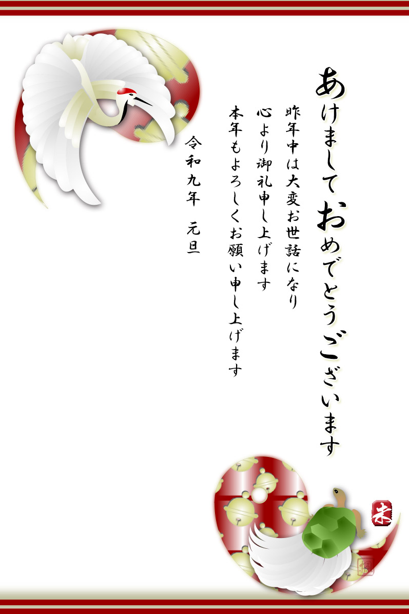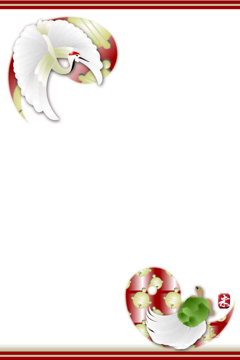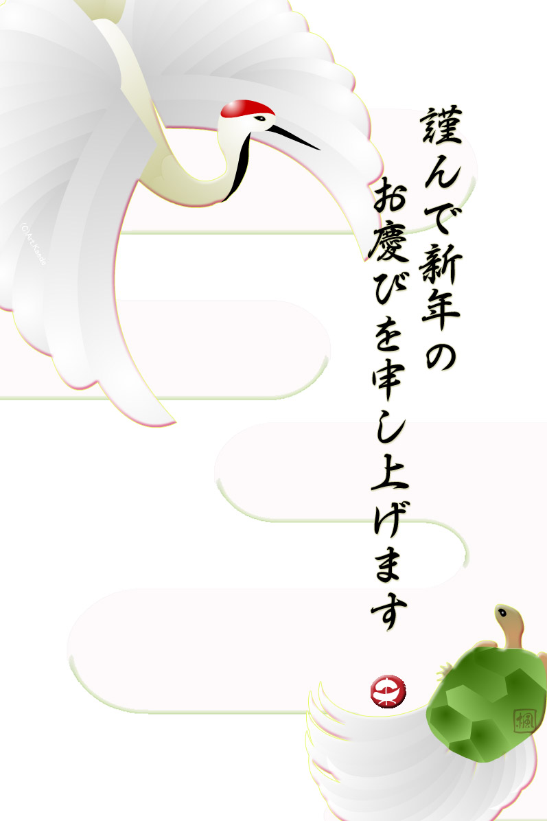 年賀状テンプレートは鶴と亀の縁起の良いデザインです。