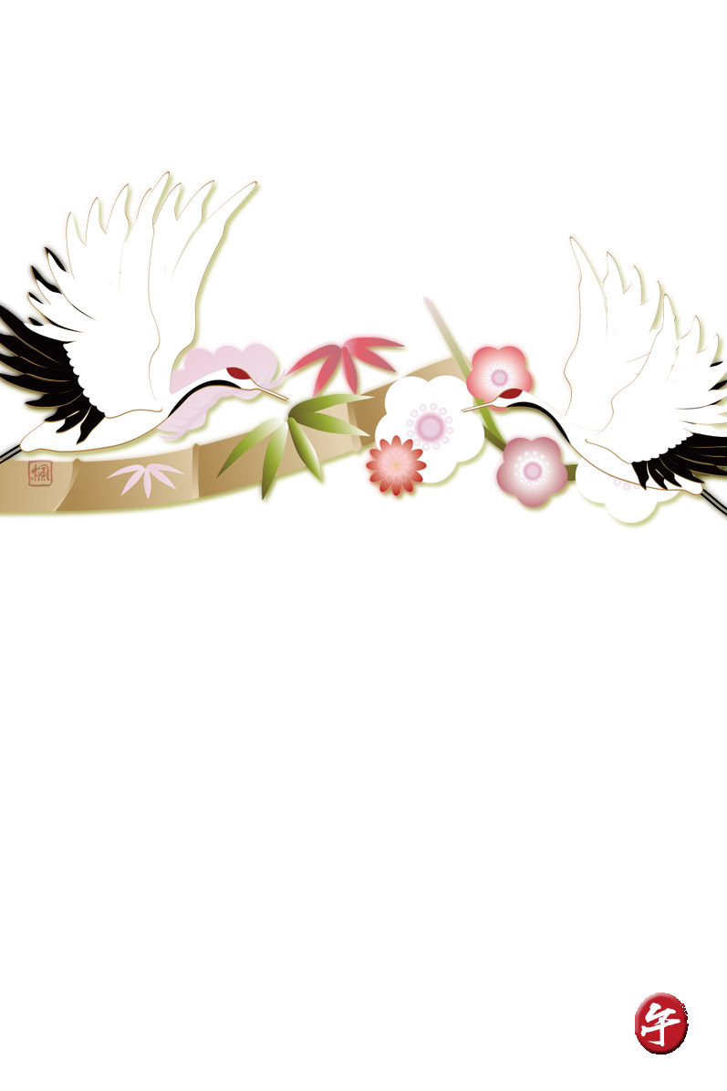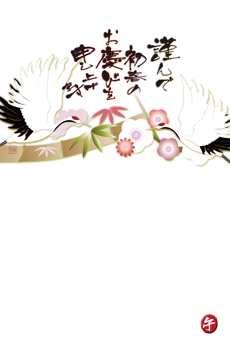 年賀状テンプレートは鶴と松竹梅のイラスト