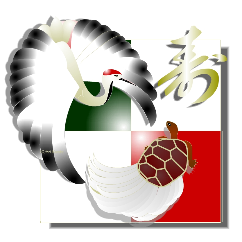 鶴と亀と鳳凰のイラスト| 夫婦を表した鶴や縁起の良い鶴と亀のイラストと鳳凰、年賀状だけでなく結婚のお祝いやご報告にもご利用くださいませ。