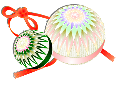 十二単と手鞠のイラスト |十二単を着た髪の長いお姫様をイメージしたイラストと細い線で描いたてまりや可愛い手鞠のイラストです